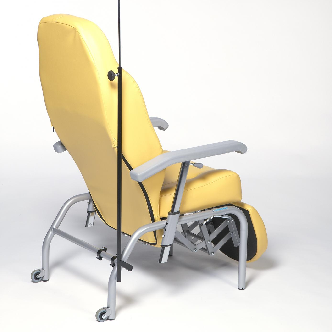 Sedia con schienale inclinabile a 45°, equipaggiata di un appoggiagambe e un sistema combinato di allungamento automatico dipendente dall'inclinazione dello schienale.